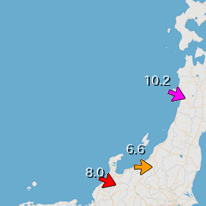 ピンポイントSWELL予測値(3H毎) 京都・八丁浜