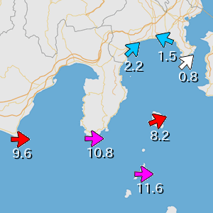 夕方にかけて少し変化があり、オンショアが弱まる可能性も